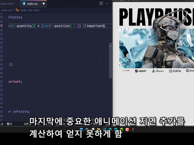 - 만약 다른 CSS 파일이나 규칙에 의해 animation-delay가 변경된다면, 슬라이더의 애니메이션 흐름이 깨질 수 있습니다.