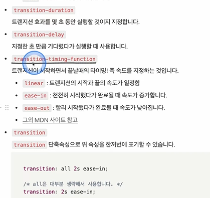 transition-delay = 지연됐다가 시작하는 것.